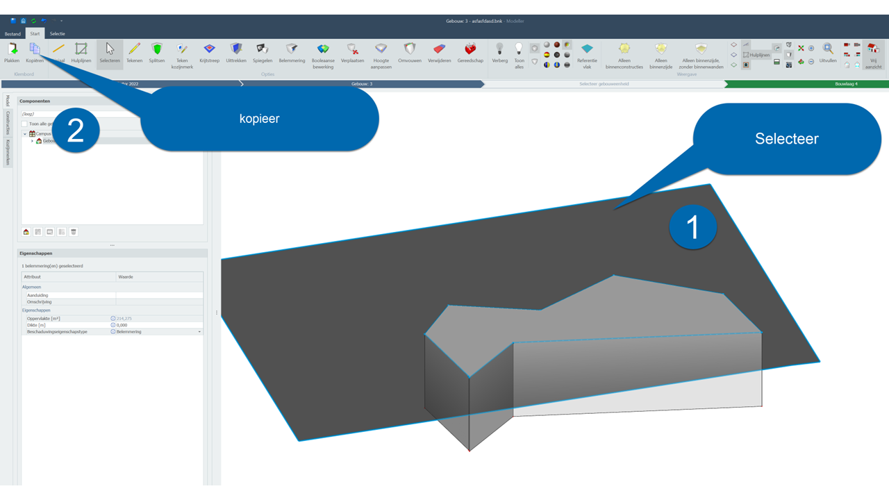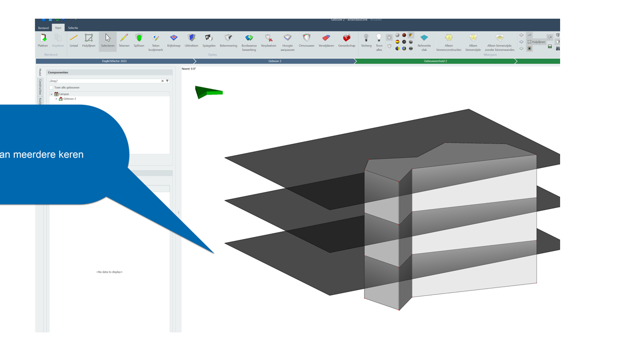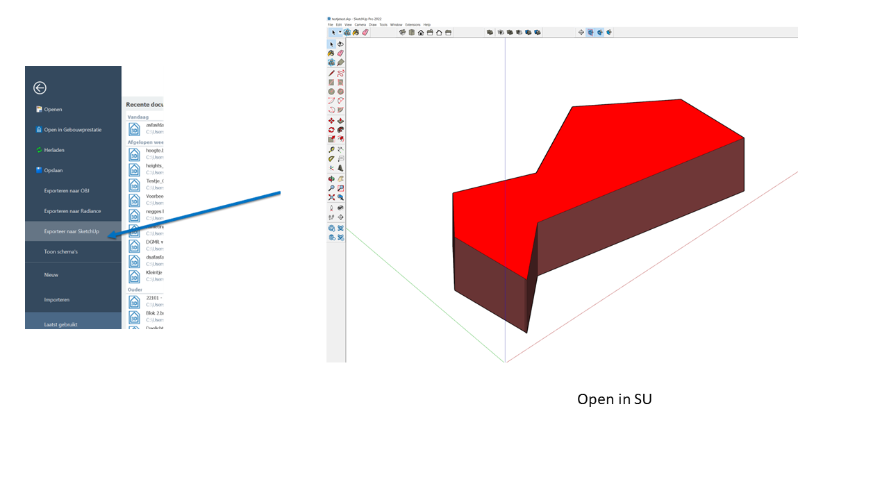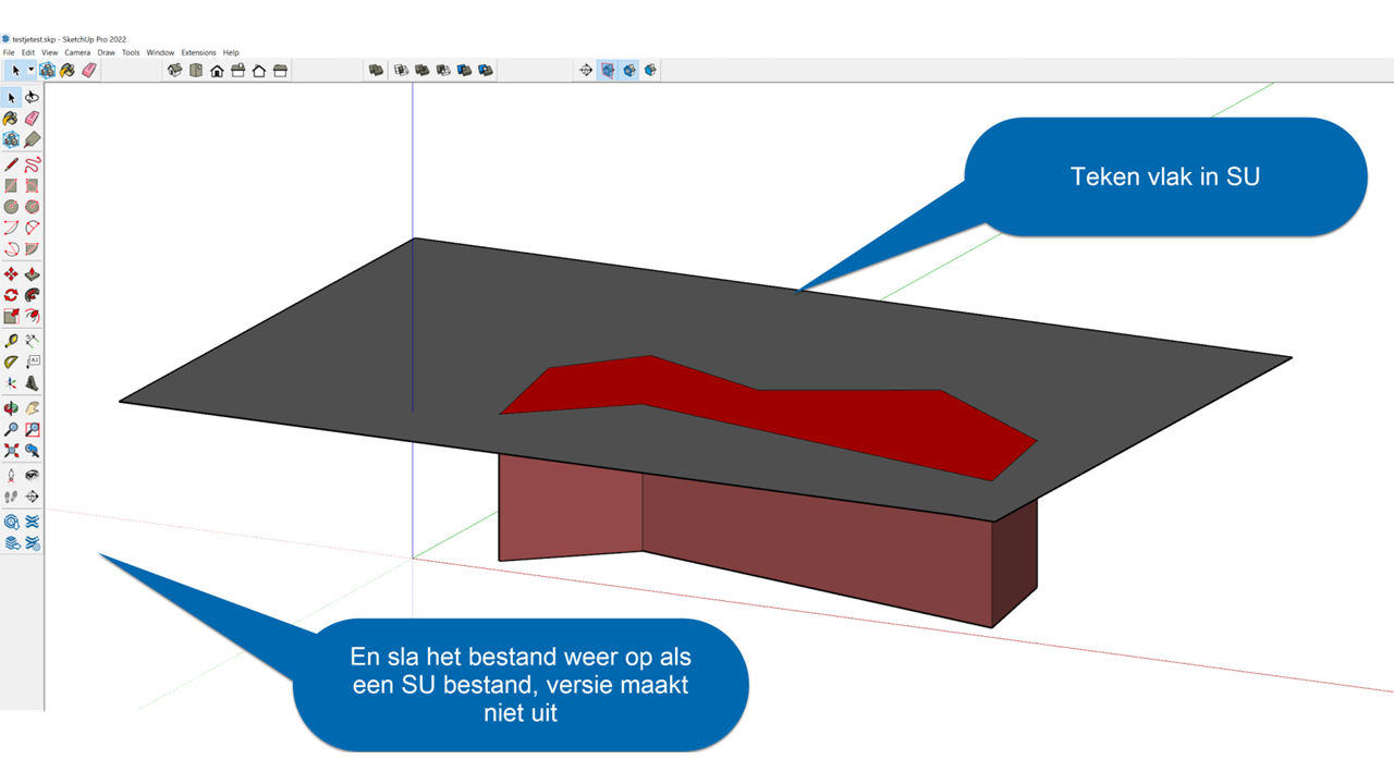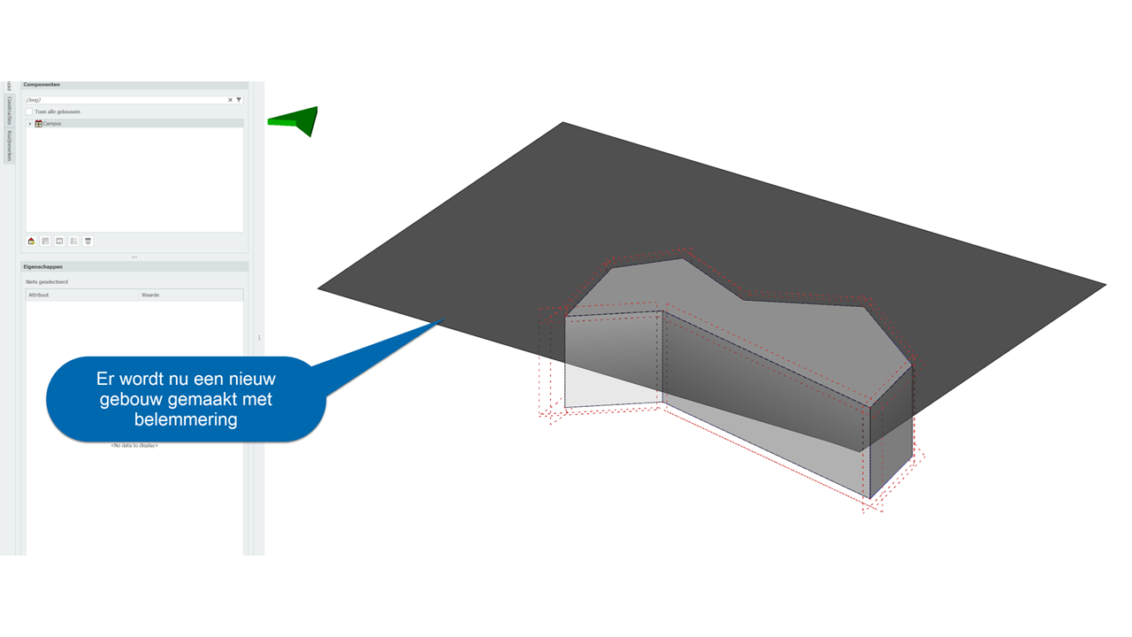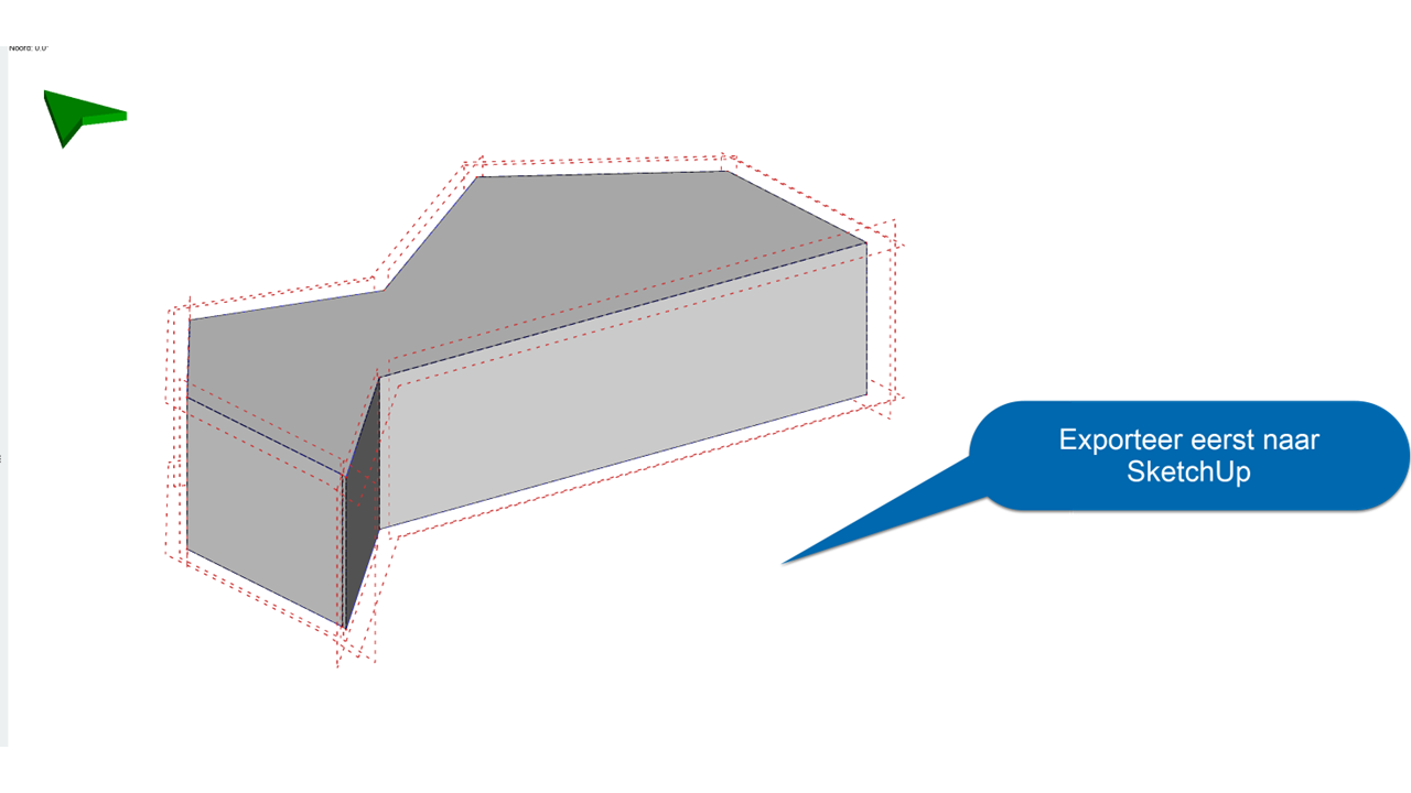 Een andere mogelijkheid is om in SketchUp een DWG als onderlegger te kiezen en zo het vlak in SketchUp te tekenen, dan komt het bij import in de Modeller ook als een belemmeringsvlak binnen.