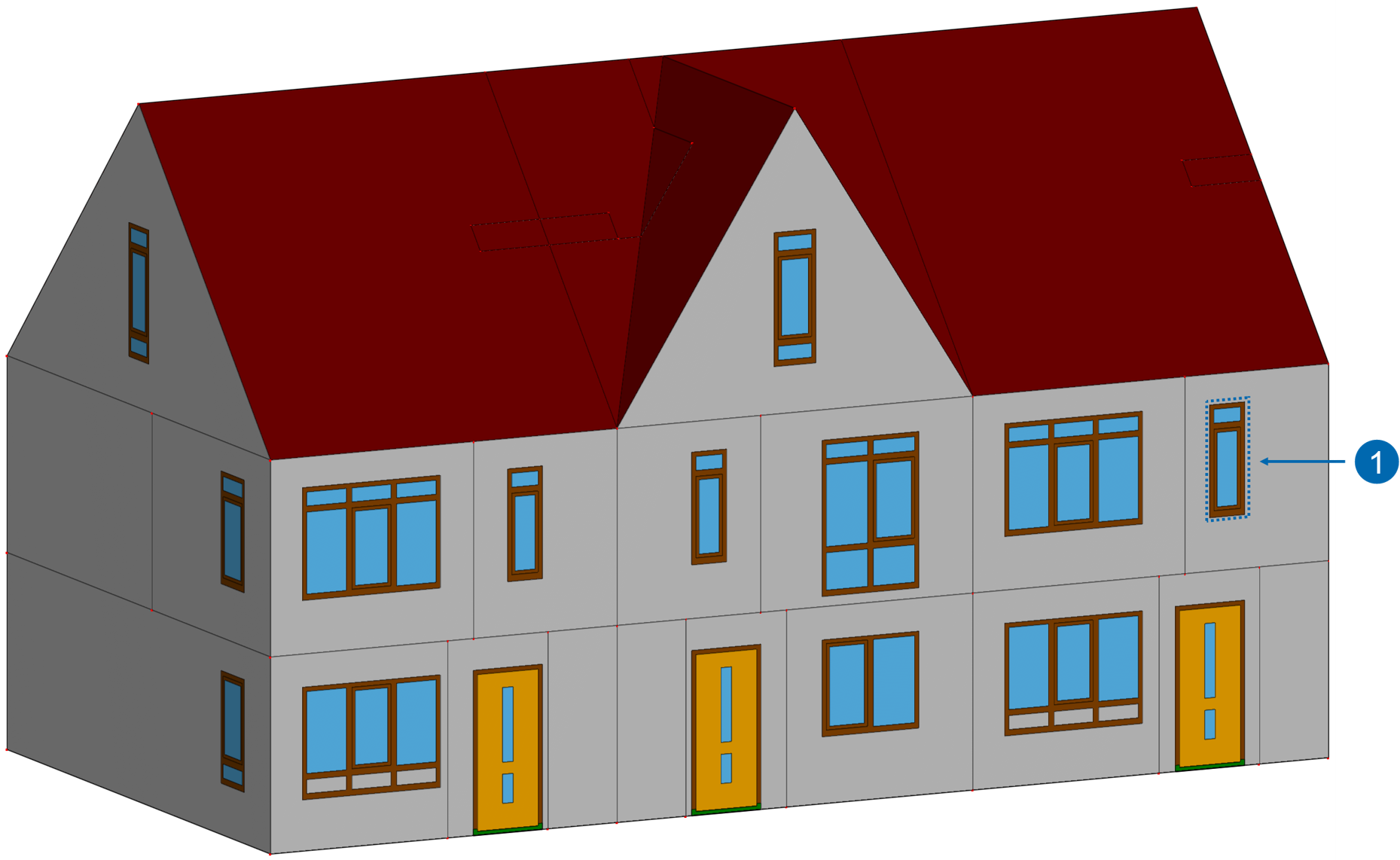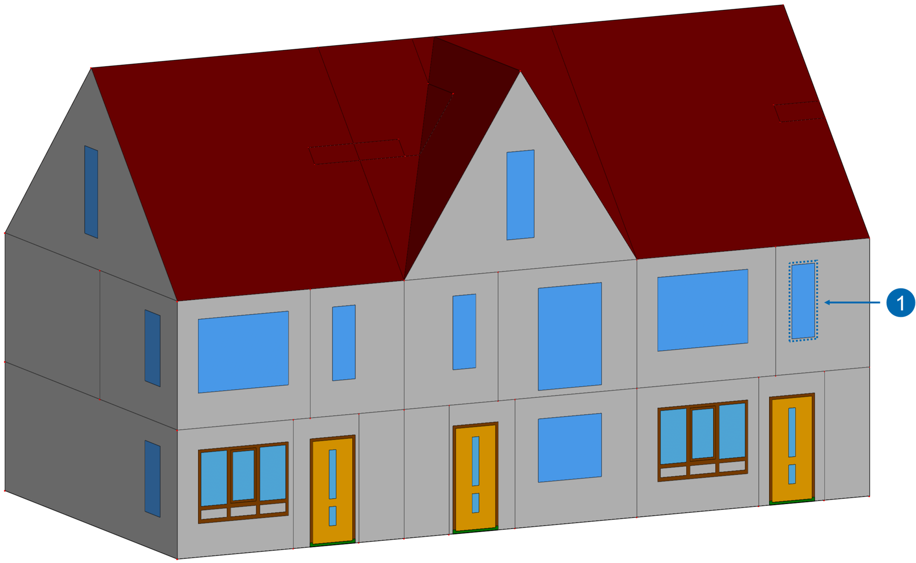 - Maak een buitenraam-constructie met glaseigenschappen aan.