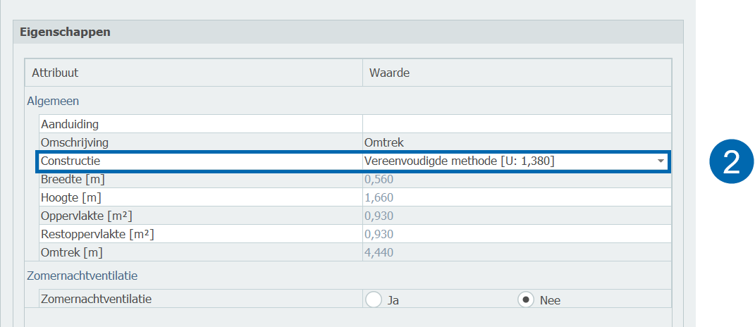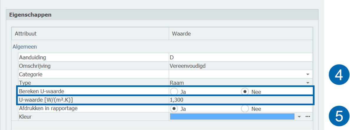 - Kies de rekenmethode 'bereken met U-waarden van glas en kozijn'.