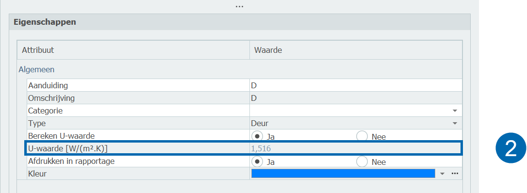 - De berekende Uw-waarde [W/m2∙K] wordt hier getoond.