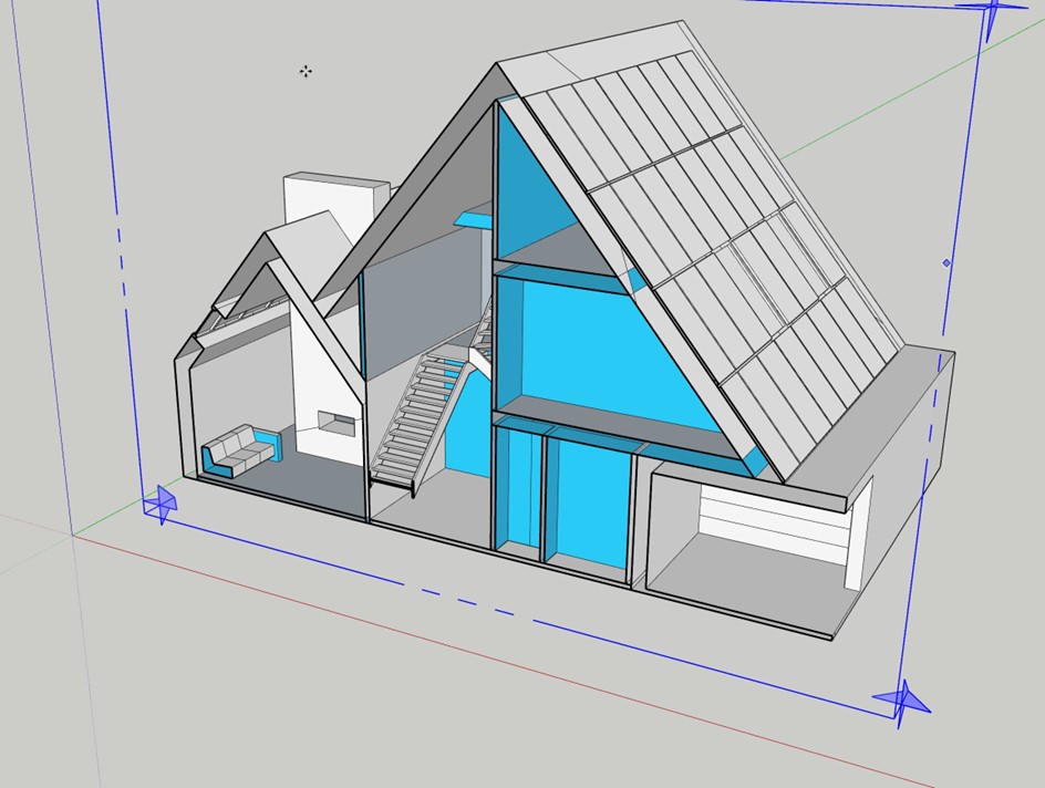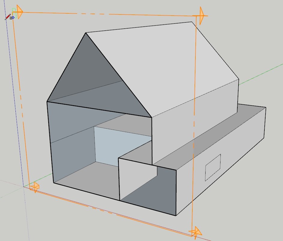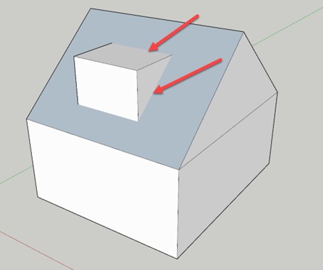 In SketchUp worden elkaar niet goed snijdende vlakken niet weergegven met een duidelijke lijn. Deze lijnen kunnen ook niet geselecteerd worden.