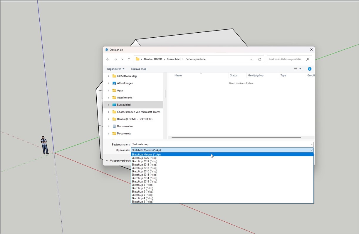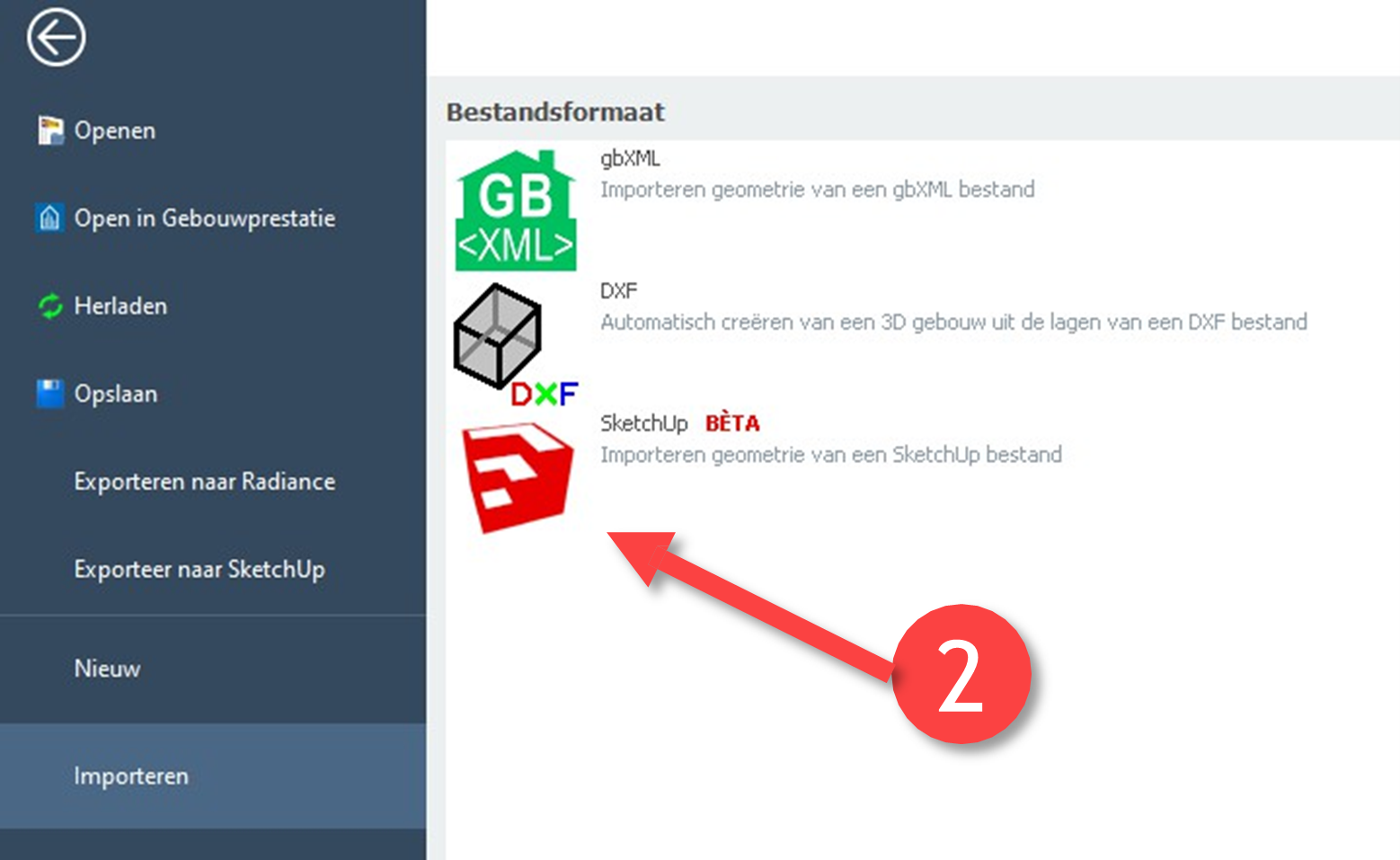 Het is mogelijk om SketchUp-bestanden in te lezen die zijn opgeslagen als een "SketchUp Models (*.skp)"-bestand. Oudere SketchUp-bestanden kunnen ook worden ingelezen in de Modeller.