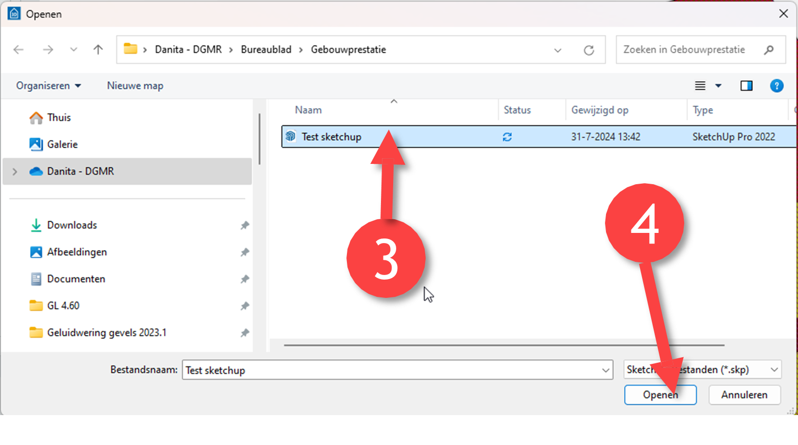 Selecteer het te importeren betand (3) en klik vervolgens op "Openen" (4)