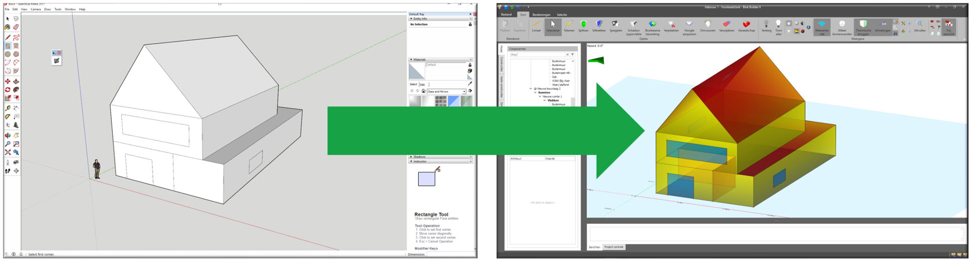 In SketchUp getekende overstekken en belemmeringen kunnen ook worden geïmporteerd: