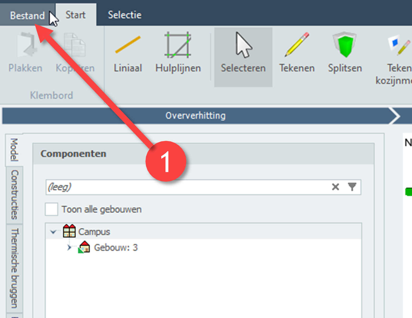 Het gebouwmodel wordt daarna zichtbaar in Modeller.