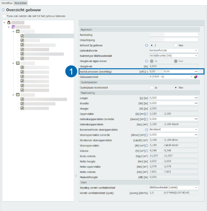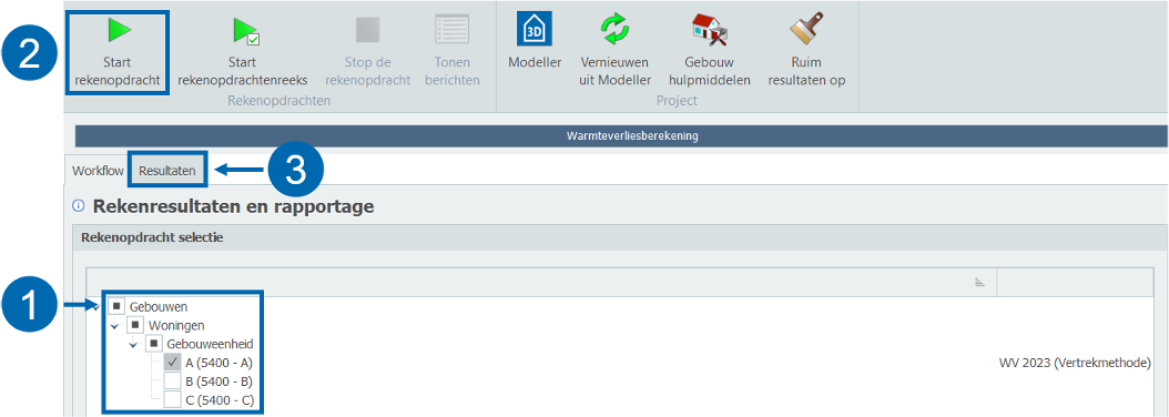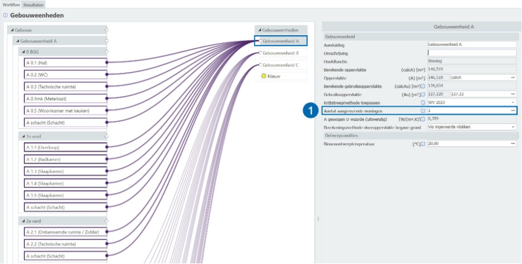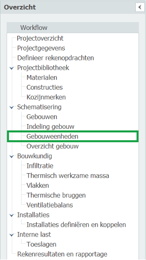 - Selecteer de gebouweenheden die onderdeel zijn van de rekenopdracht.