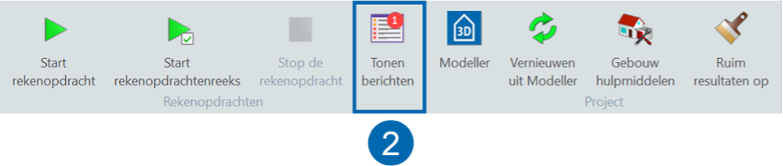 - Berichten in Gebouwprestatie: indien er problemen bij de uitvoering van een rekenopdracht optreden, worden deze hier getoond.