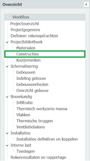 - Voeg alle constructies aan het project. Bereken de Rc-waardes of vul deze handmatig in.*