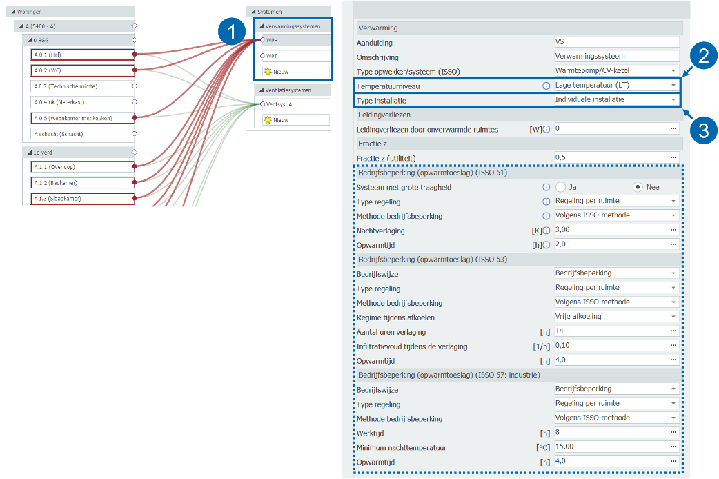Gebouwprestatie wijst de relevante bedrijfsbeperkingsmethode toe wanneer hetzelfde verwarmingssysteem bij meerdere gebruiksfuncties wordt toegepast.