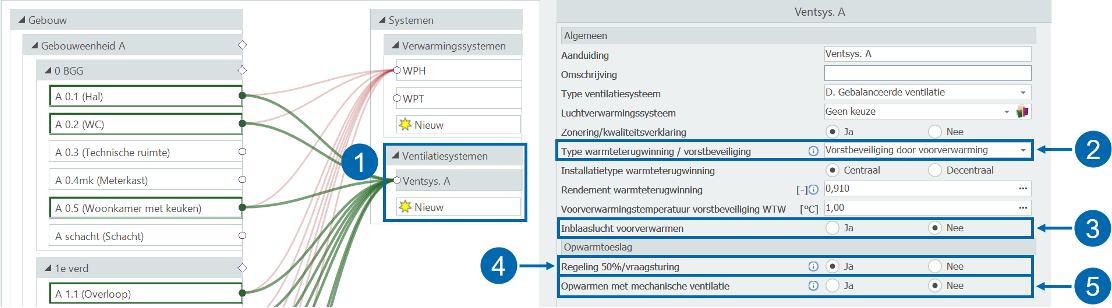 - Geef aan of er mechanisch geventileerd wordt tijdens bedrijfsbeperking/nachtverlaging.