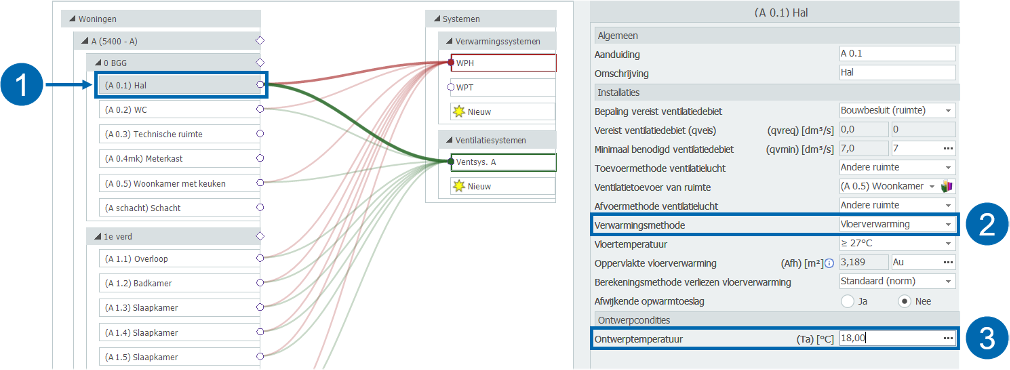 Het toewijzen van verwarming kan eenvoudig in de Modeller.