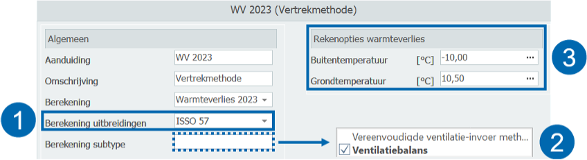 - Kies een methode voor het berekenen van ventilatieverliezen.