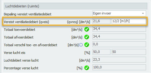 In het veld hierboven is de waarde van het ventilatiedebiet aangegeven in een formule 12/2, en in een andere eenheid [m3/h].