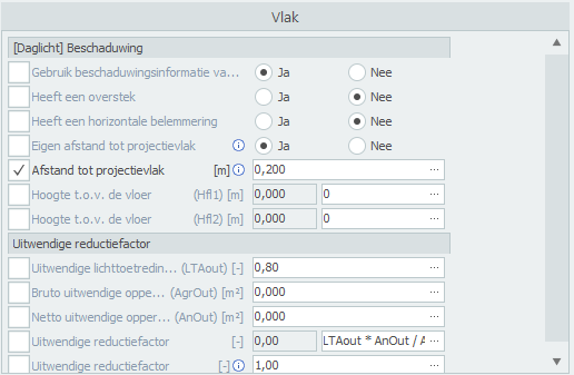 - Zet vervolgens een vinkje bij de invoer die aangepast moet worden voor alle geselecteerde elementen, in dit voorbeeld is dat het Afstand tot projectievlak.