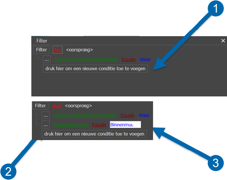 - Voeg het filter constructietype 'Binnenmuur' toe