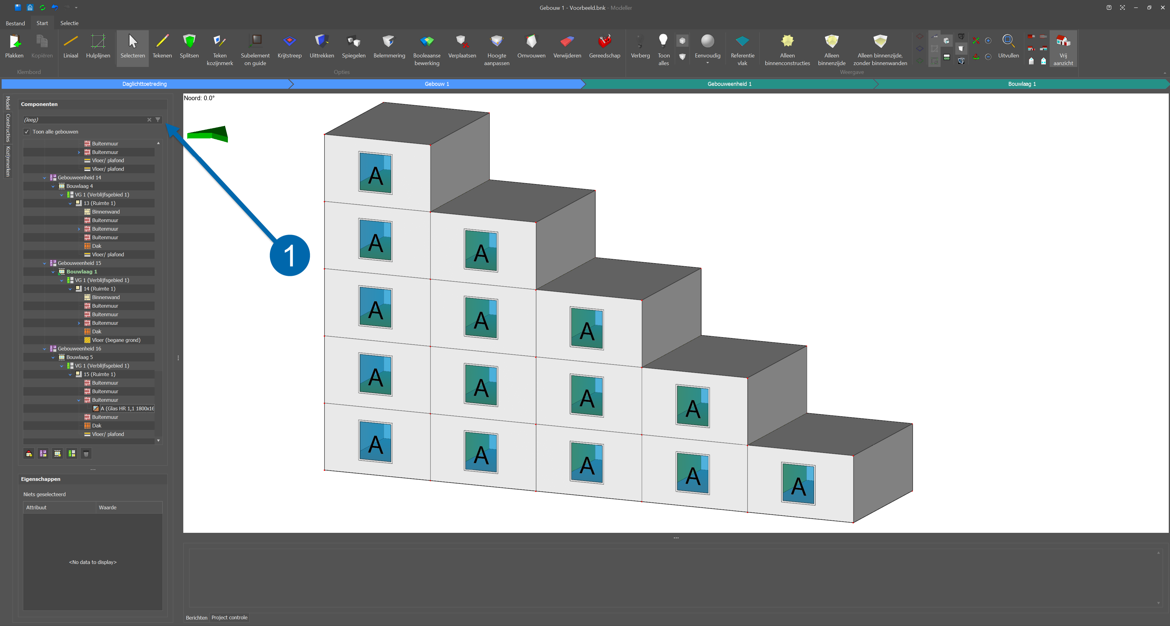 - Selecteer 'Gebouweenheidsscheidend vlak'