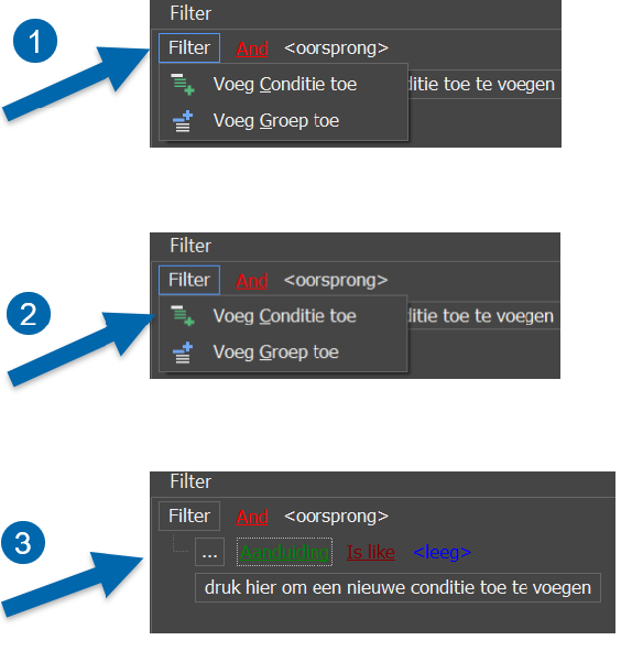 Een scherm waarin de specificaties voor het filter kunnen worden ingevoerd komt dan in beeld.
